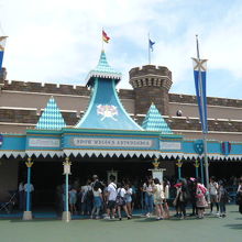 ファンタジーランドにある白雪姫と七人のこびとは、4人乗りのトロッコに乗って展開の速い冒険の旅をめぐるアトラクションです。暗い設定で魔女が怖かったのか小さい子供たちは泣いて戻ってきました。午前中は比較的空いています。