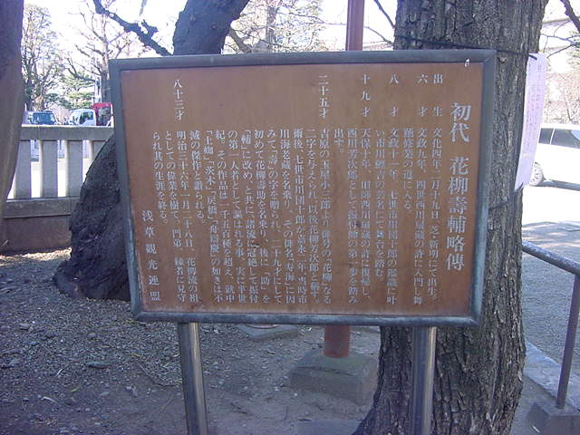 外国人も多く訪れる観光地、浅草の「浅草神社」境内にある句碑です。歌舞伎界に花柳流を創設した人物として知られていて、「雷は田町をよけて鳴りわたる」の句が刻まれています。周囲には同じような句碑があるので、眺めながらゆっくり歩きたいところです。