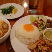 ランチの時間帯にいきました。屋内ですが、テラス席風の席や、ゆったり座れる、ソファーシートもあり、そんなに、エスニック風ではく、カフェレストラン風の内装です。