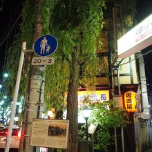 今はぎらぎらしたネオンが光る地方の繁華街風になってしまっていますが、細いこの柳だけが当時の風情をなんとか残そうとしているように見えました。