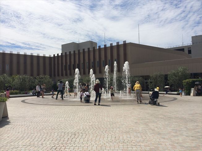 阪急西宮ガーデンズ (ハンキュウニシノミヤガーデンズ)は、屋上に有りますが、噴水が有って、暑い日には子供達が水あびをして楽しんでいる風景が目に付きます。それを見ているだけでも心が和みます。ぜひ、一度、行ってみてください。