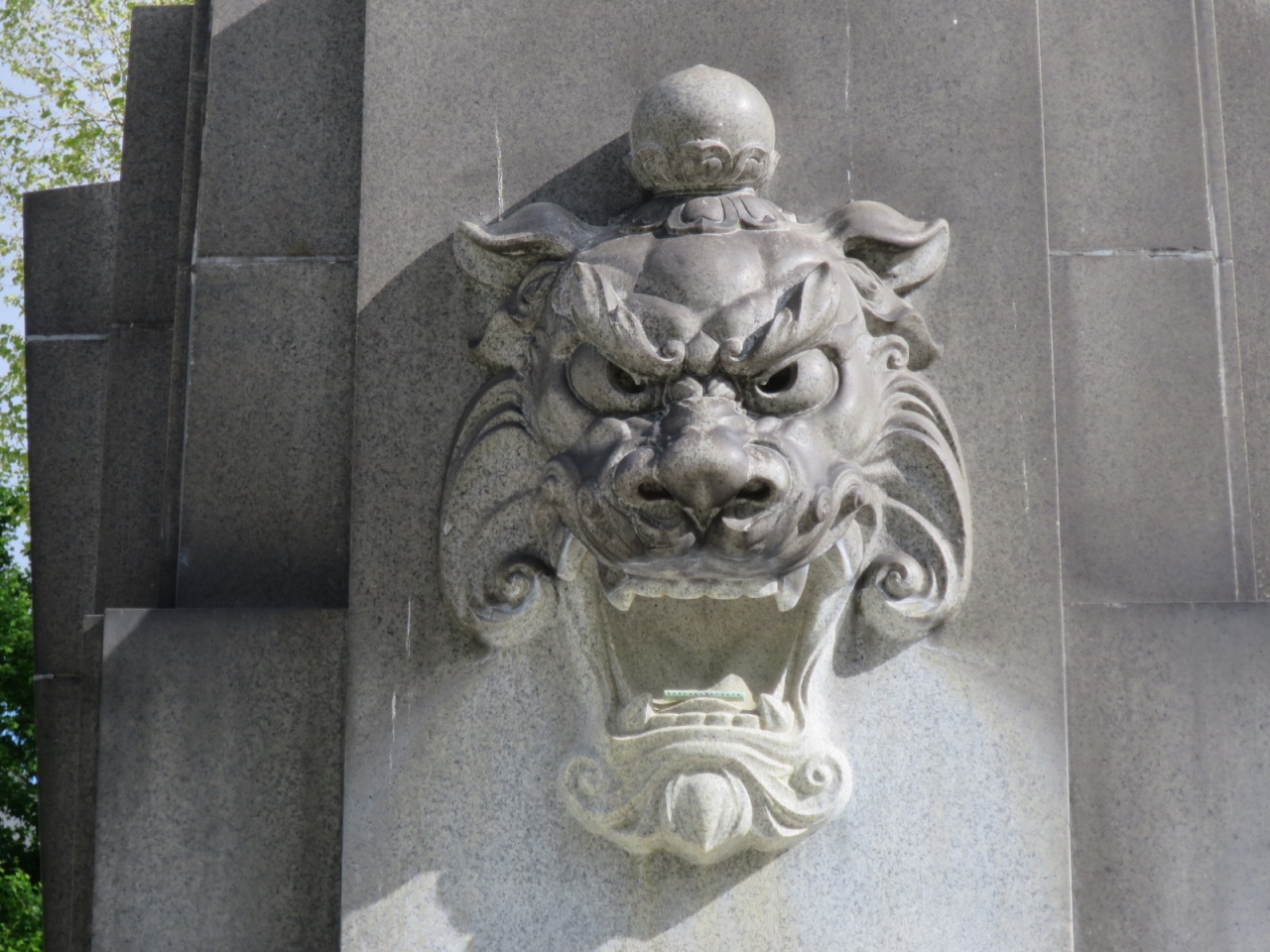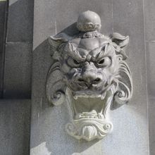 また、中国風の仮面のようなものが四方に付き、夏場の日中は水を吐き出しています。