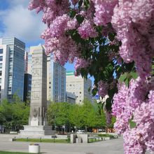 5月下旬のライラック祭りから10月末まで、7時~22時の間、塔からは水が流れ出し、周囲が池になっています。