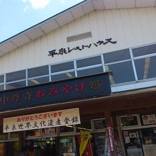 平泉の中尊寺の入口近くにある団体の観光客向けの施設です。観光バスが何台も停められる大きな駐車場があり、そこからたくさんの観光客が降りてきます。この大量の団体客向けの食事施設とお土産を売る施設の2つがあります。おみやげ処の方を利用しましたが、岩手県の名物がたくさん販売されていました。