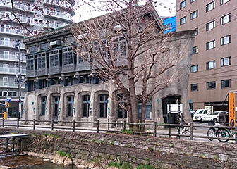 (写真では)石造り的(正確にはコンクリ?)な印象ですが、(実際に観ると)2階の窓廻りの木造作がなかなか見応えがありますねぇ。