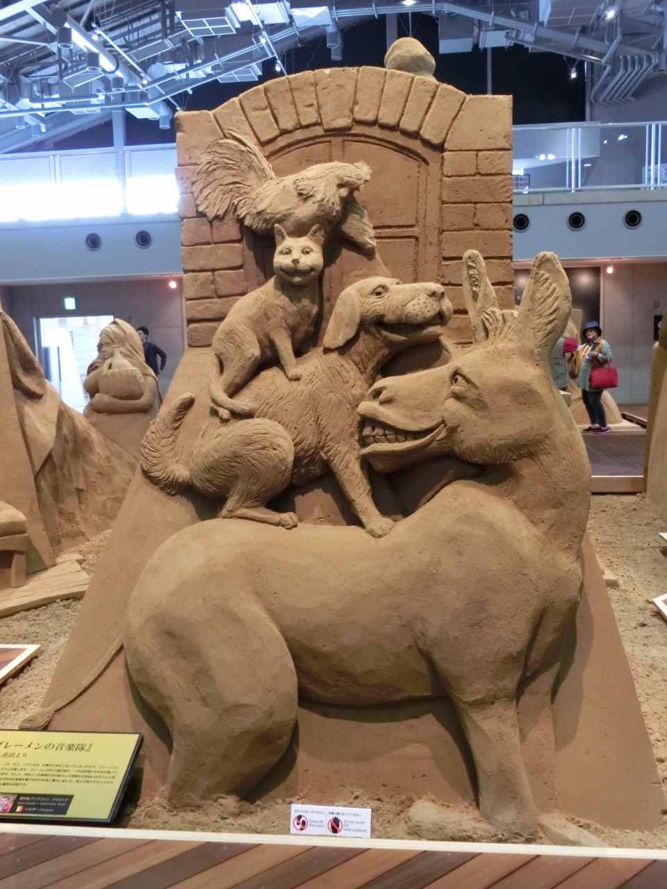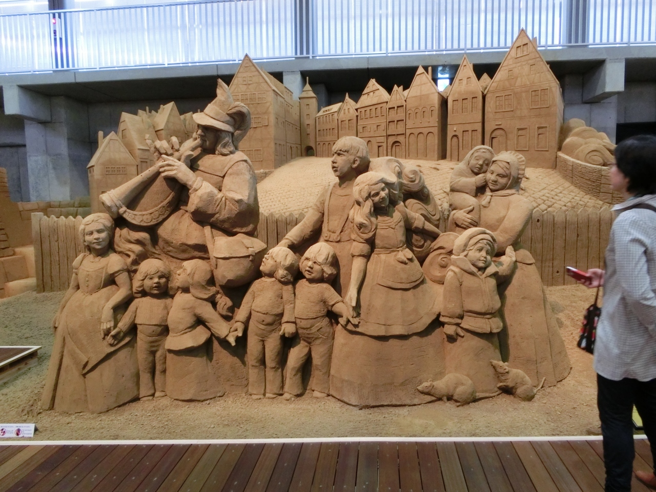 砂粒で出来た砂像の数々、“崩れる”の代名詞の砂でこれだけ細かな細工の砂像ができるとは。さっぽろ雪まつりの雪像や氷像を思い浮かべましたが、表現の細やかさは砂像が勝っているようです。今回は「砂で世界旅行・ドイツ編」で、グリム童話の世界やドイツの歴史ドイツを代表する名城の作品が展示されていました。毎回テーマを変えて作品の制作が行われるとのこと、その都度行ってみたいものです。