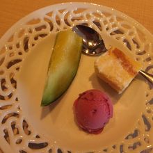 デザートはラズベリーのジェラートとメロンに焼き菓子♪