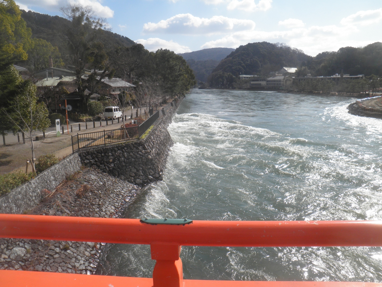 宇治川を散策して平等院に参拝しました。 きれいな朱色の橋から眺める景色は、冬でもなかなか良かったです。橋のかたわらに、源氏物語の像があって、観光客が記念撮影をしていました。 川の向こう側にも、宇治上神社などみどころがあり、京都市内が混雑するときでも人が少なめなようで、散策するのにいいところです。