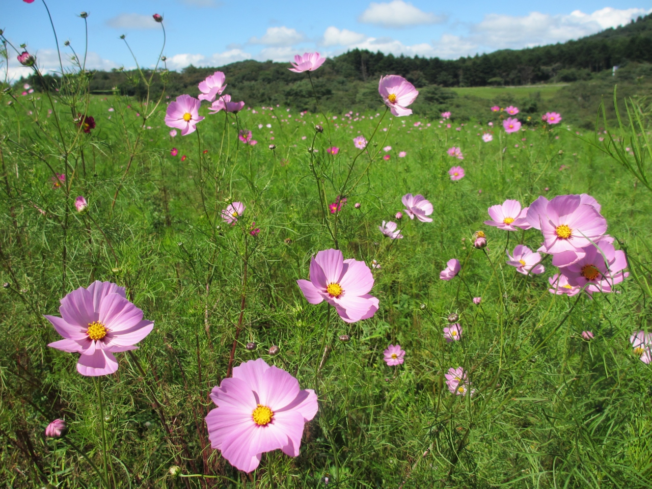 佐久市街から車で30分ほど上るとコスモスやハクサンフウロが美しい内山牧場に出ます。10万株のコスモスが咲くコスモス畑は、展望台もあり迫力満点です。一周600mほどの遊歩道も整備され歩きやすくなっています。初夏のレンゲツツジも美しいようです。私たちが訪れたときは3分咲きでした。訪れる前に満開の時期をキャンプ場に確認したほうがいいと思います。