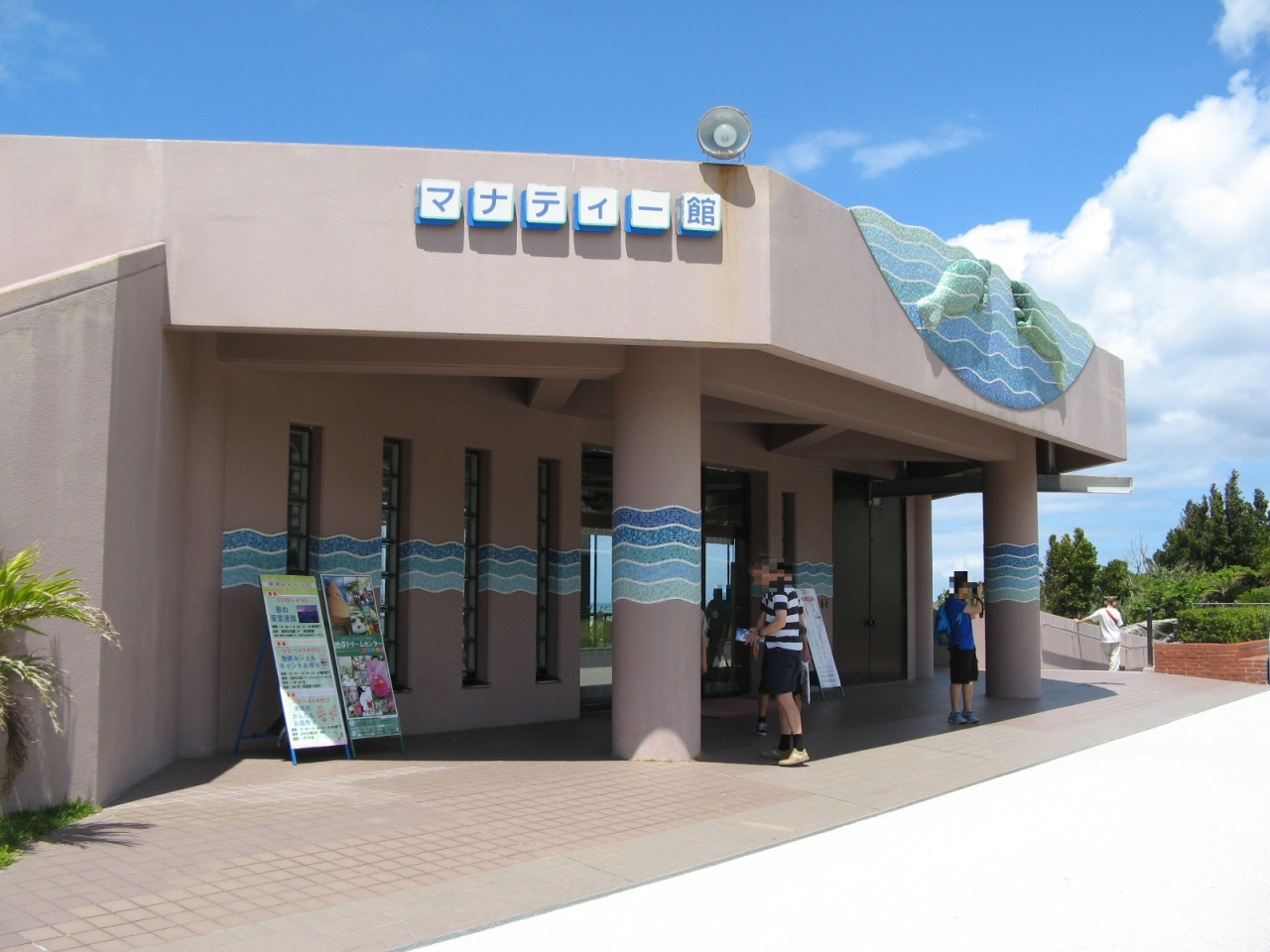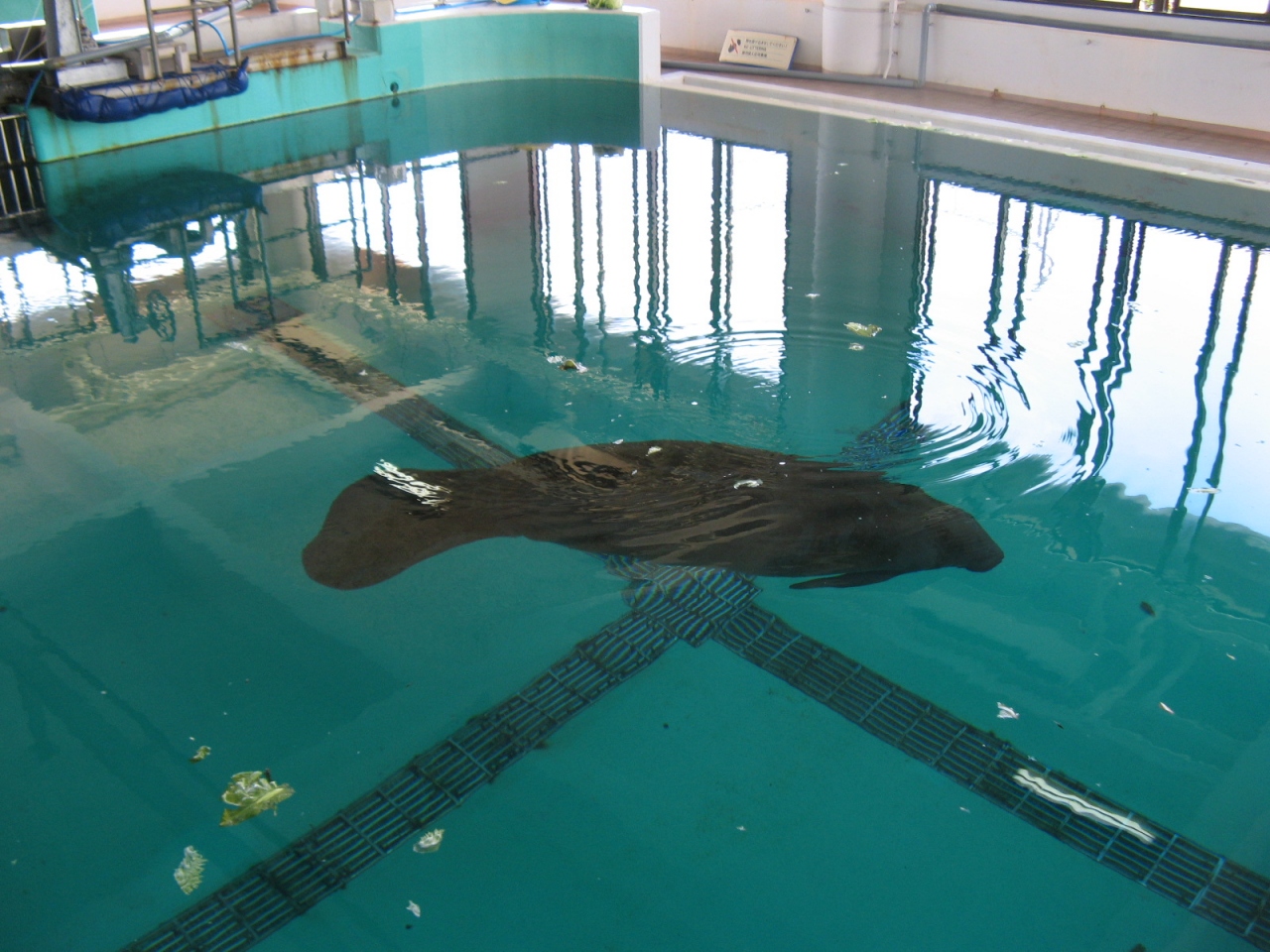 美ら海水族館から出て海の方向に少し歩くとマナティー館があります。水槽の上からと館内に入り水槽内を横から眺めることができます。