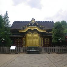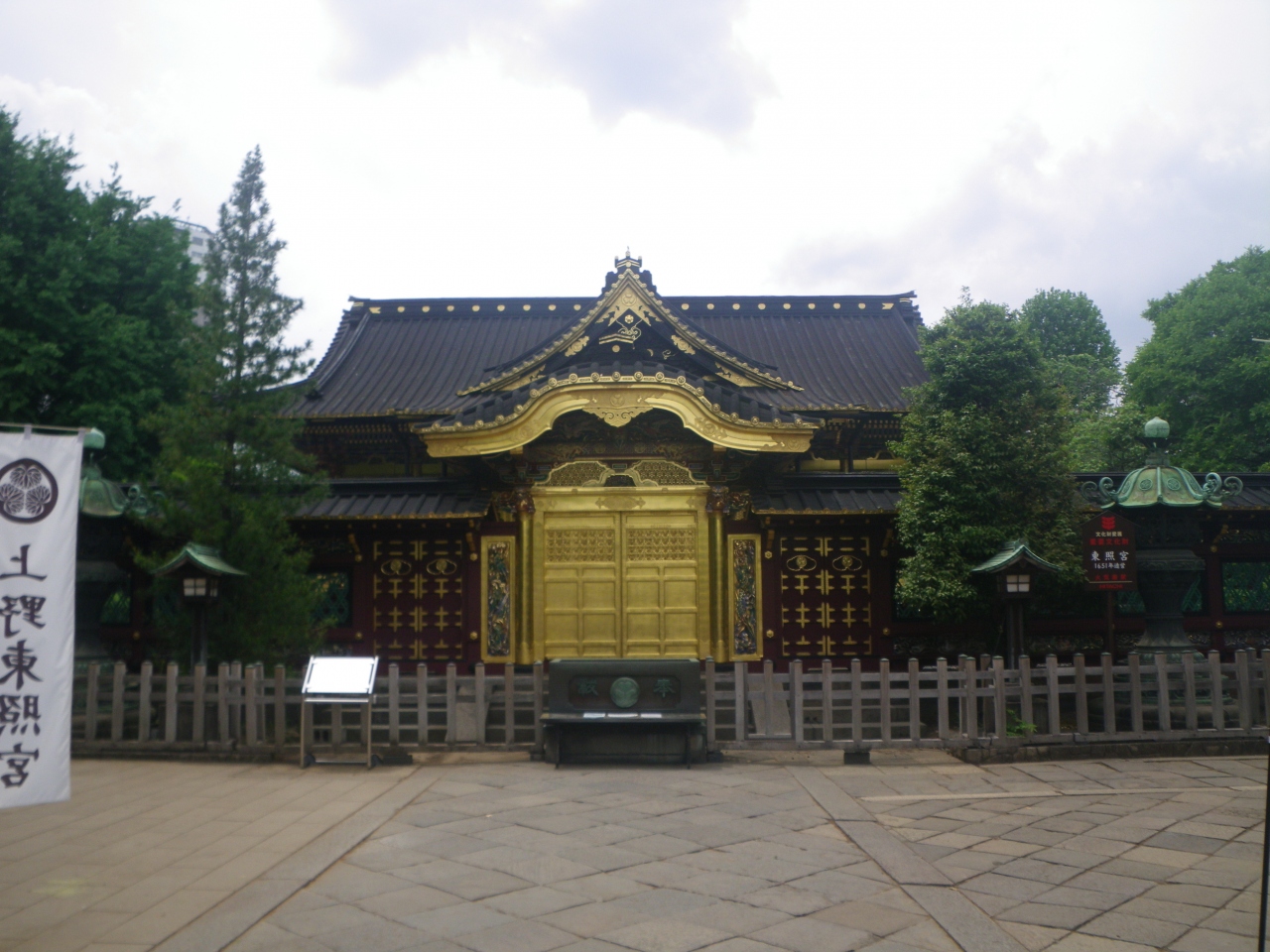 上野東照宮の参道をまっすぐ進むと、金色の門に突き当たります。この唐門には左甚五郎作といわれる昇り龍と降り龍の彫り物があります。金色に輝き豪華なものでした。国の重要文化材に指定されています。この門の向こう側に本殿があり、この先は入場料が必要になります。