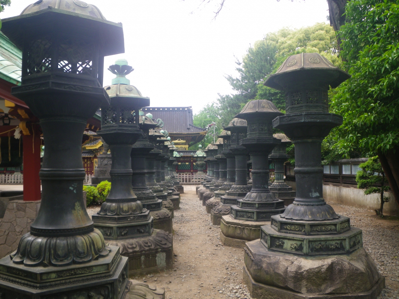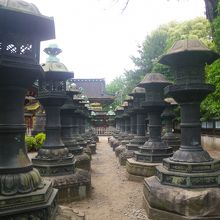 上野東照宮の参道にたくさんの銅灯篭が並んでいました。石灯篭も多いのですが、銅灯篭も目をひきました。この銅灯篭は諸国の大名が東照大権現霊前に奉納したもので、竿の部分には寄進した大名の姓名と官職名・奉納年月日が刻字されています。国の重要文化財に指定されている貴重なものです。
