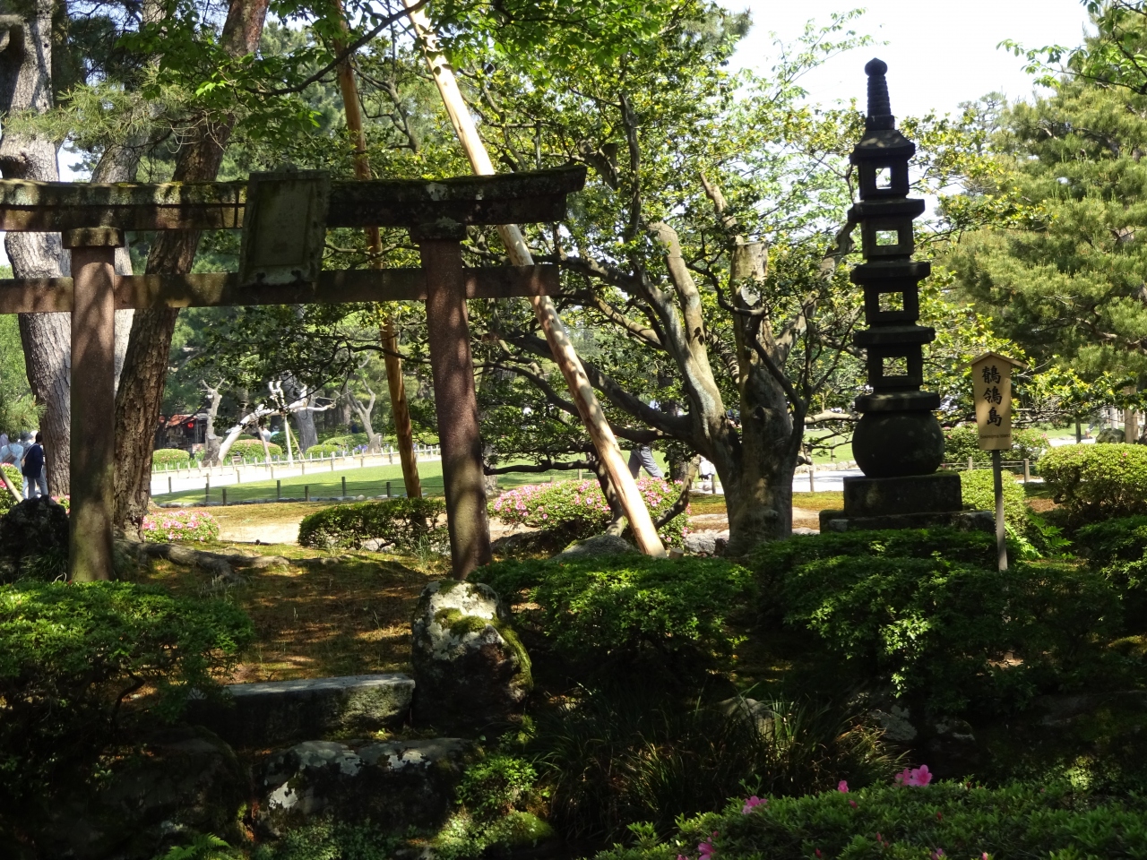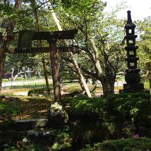 花見橋から近い曲水の中にあり、その中には鳥居と塔が見える。