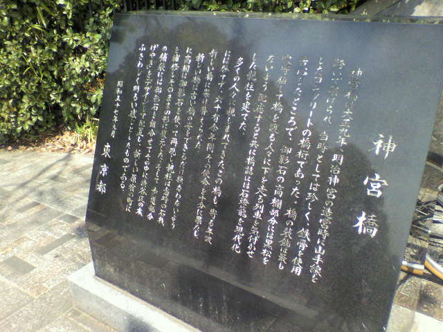 JR原宿駅や地下鉄の明治神宮前駅から明治神宮に向かう時に渡る橋です。橋の下には川は流れておらず、JR山手線が通っています。