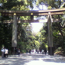 大きな鳥居の前に立つと、気持ちがシャンとしますね。社殿までに鳥居が3つあります。明治天皇と昭憲皇太后をお祀りするこの神社はとっても自然豊かです。のんびりとお参りするのにいい季節になりました♪