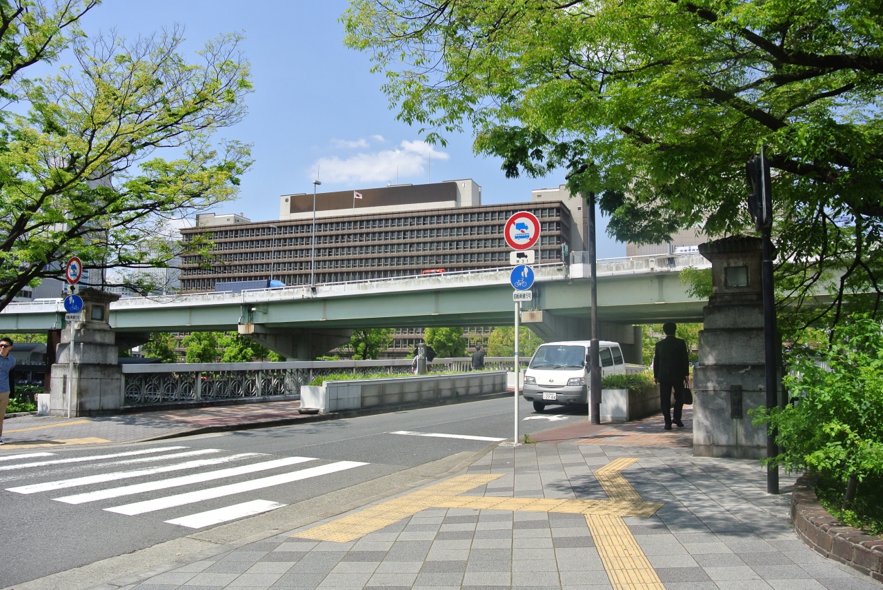 橋の名前は天神祭の鉾流しに由来すると言われていますが、とても美しい名前です。橋の建設は1929年。橋の両側にある灯篭はその頃の物だと思われます。近年改修が行われて欄干などは造りなおされていて、全体的に和洋折衷の橋になっています。