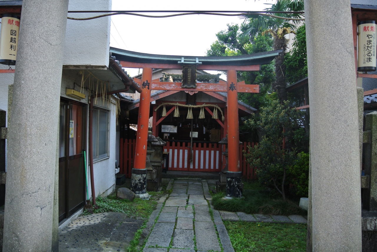 七条大橋の西側のたもとにある小さな神社ですが、りっぱな石造りの鳥居があり、管理棟のようなところもあって、きちんと清掃・管理されているようです。献灯も下がっていて地元の方の信仰も篤いことを伺わせる京都らしいお社です。