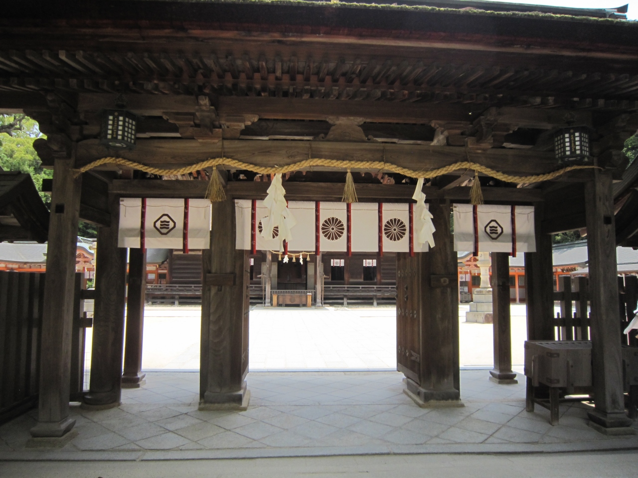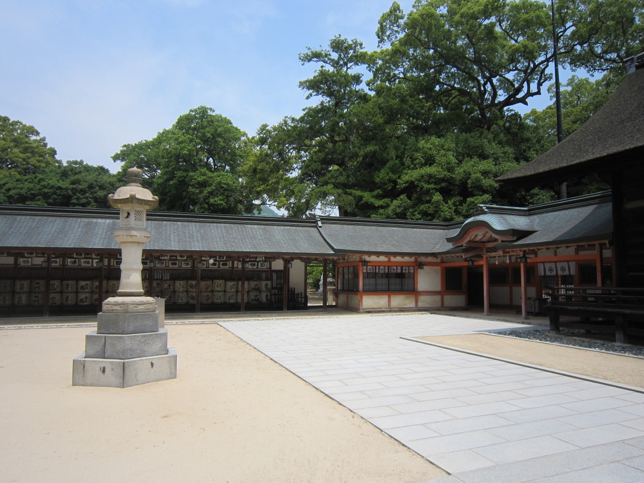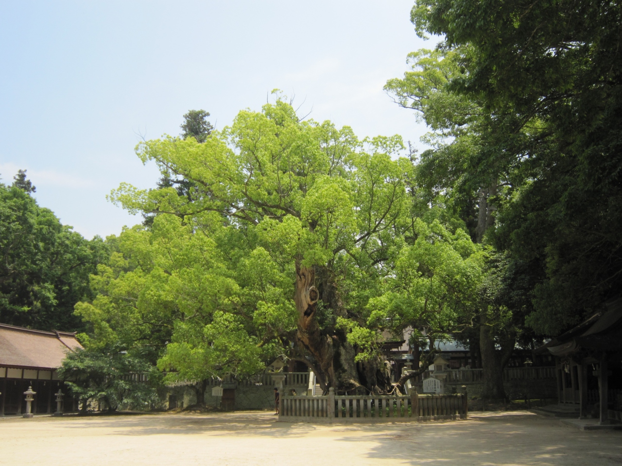 海や山の神として信仰の厚い神社で宝物館には戦勝のお礼に武具・甲冑が展示さているということです。境内には樹齢2,600年と言われている楠が繁っていました。広い境内で観光客も少なくゆったりと観光できました。