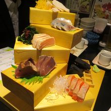 お造りは、ずらし段に炭の乗った食器で出てきました。