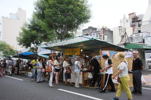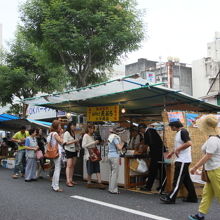 ひやしあめ ¥120を飲んで、賑わってる日曜市名物・いも天 1袋¥250 を食べました!