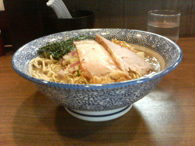 ネットの評価が高く期待して1400着で行ったらその日はもう終了だといわれました。翌週13:30から行列に並び始めました。1時間ぐらい並んでようやく店内に案内されます。濃厚煮干しそば大盛を頼みます。しばらくして提供されました。麺は硬めでうまいですが、スープの粘度が高く、つけ麺のつけ汁みたいで、ゴクゴク飲めるものではありません。そしてしょっぱい!!唇がひりつくレベル!!店を出たのが15:00過ぎです。店主は有名店で修業したらしいが、これじゃなぁぁぁぁ・・・・