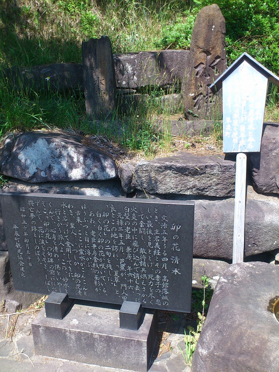 中尊寺を参詣した後に歩いて高館義経堂へ向かいました。少し歩くとJR東北本線の踏切があり、そこを渡ってすぐ左側にあります。古来霊水が沸き出る名水地と知られていましたが、道路拡張工事によって、水が枯れてしまったそうです。今あるのは、水道水を利用してかつての姿を再現したものだそうで、とても残念です。