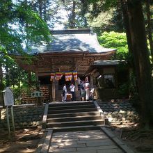 中尊寺の参道の月見坂の途中、上りでは左側にあるお堂です。月見坂の最初はびっくりするぐらいの急坂ですので、一生懸命に登っていると見過ごしてしまうかもしれません。お堂の中には弁慶の木像が安置されています。もともとは火伏せの神として勝軍地蔵菩薩を祀り、その傍に義経と弁慶の木像を安置したものだそうです。