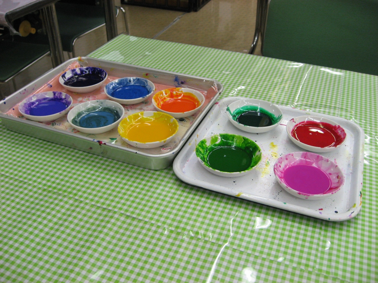 友禅染に使う色は何種類か用意してくれますが、その色を混ぜたりして、自分の好きな色を作ることはできないとのことでした。