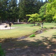 世界遺産平泉の毛越寺の庭園の中心部には遣水という小川が流れています。その流れのふちに出席者が座り、流れてくる盃が自分の前を通り過ぎるまでに和歌を読むという行事で、5月の第4日曜日に開催されるようです。当日には行けませんでしたが、5月中旬でしたのでその準備が行われていました。