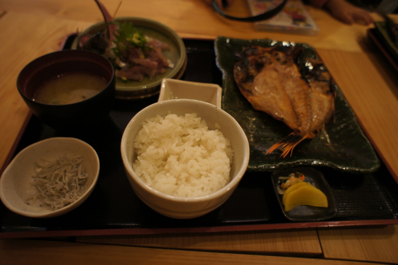 金目鯛の干物と鯵のたたきがついた定食を頼みました。