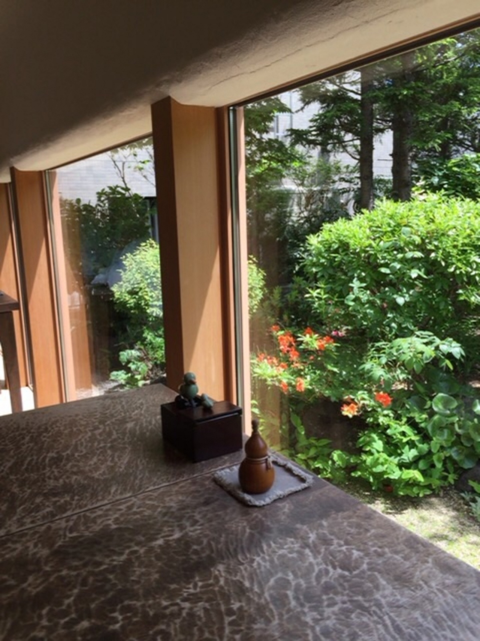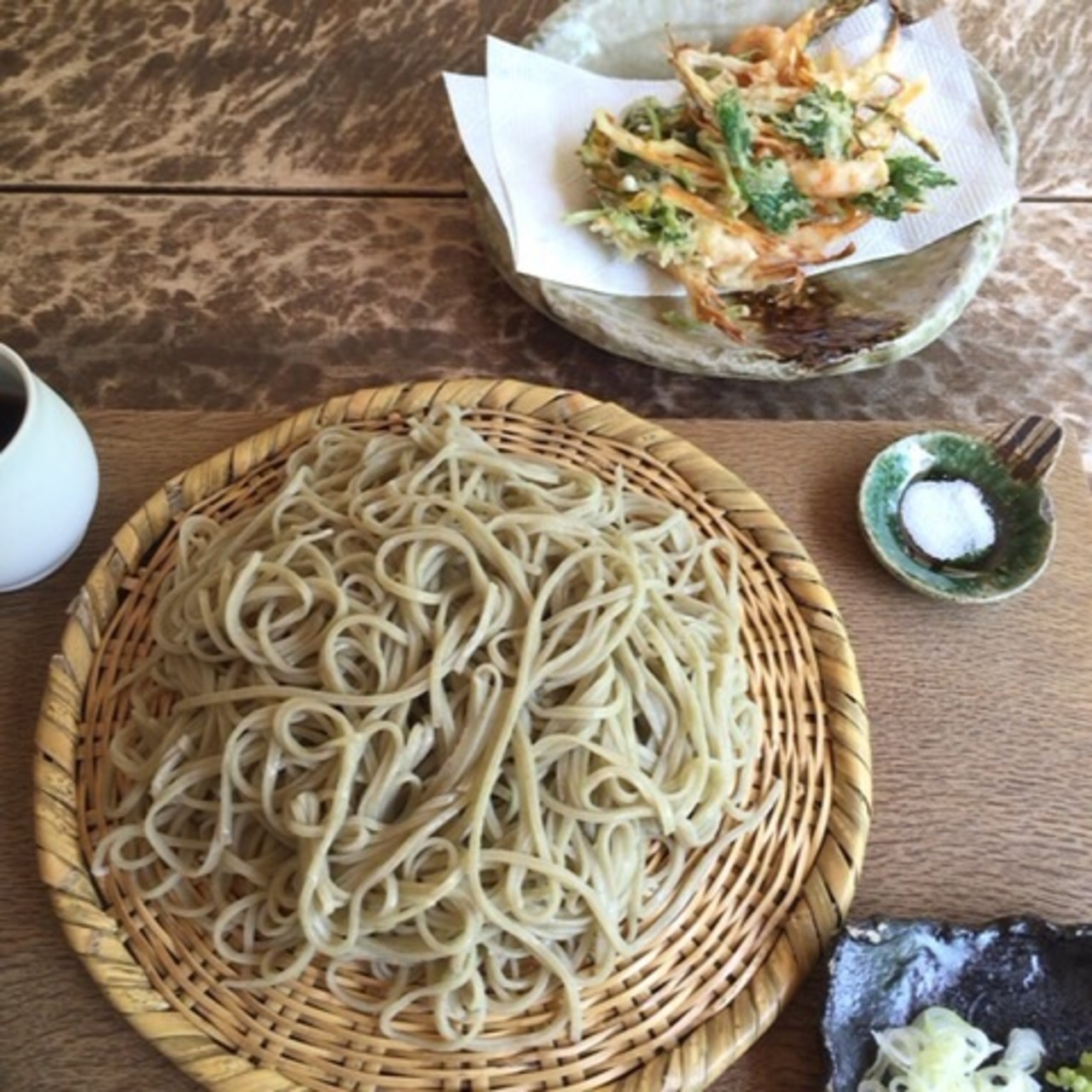店内は、テーブルが五つくらいのこじんまりした雰囲気で、庭を眺めながらお蕎麦を食べます。