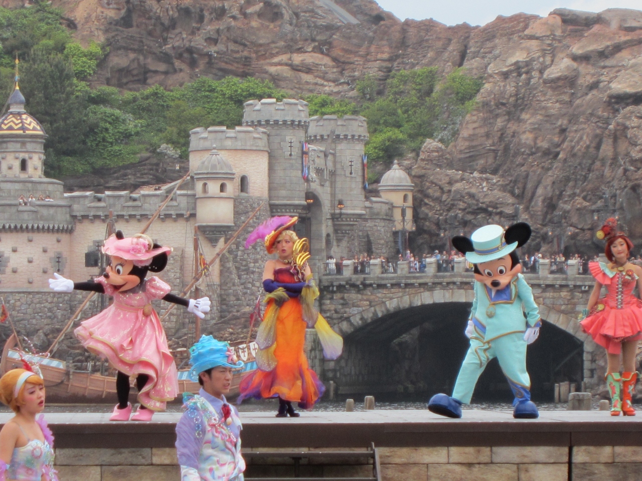 メディテレーニアンハーバーの正面に堤防ができていて、その上で、ミッキーたちが踊るショー「ファッショナブルイースター」が開催されています。正面に座って観るのがベストポジションです。華やかなショーなので、是非お勧めです。