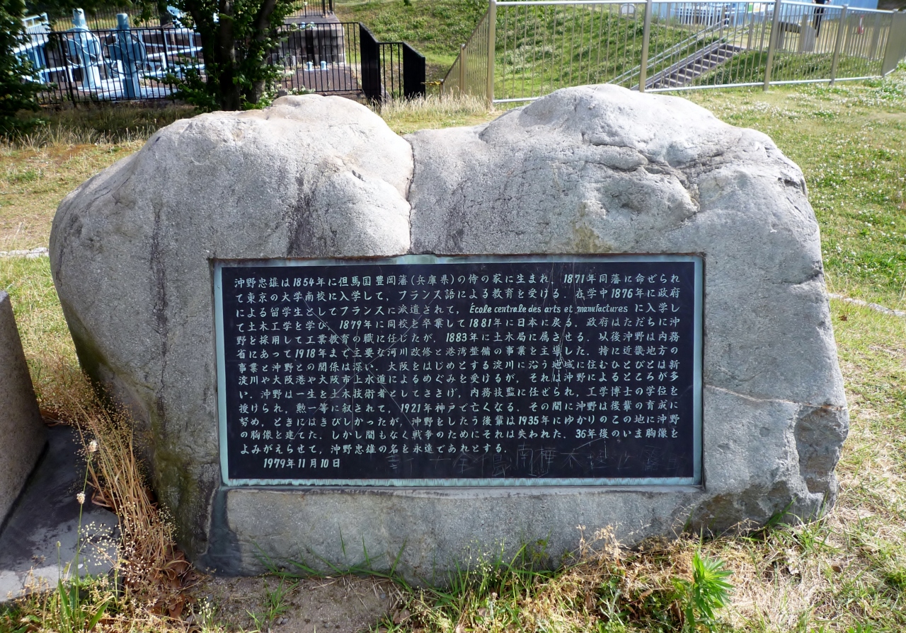 現在は淀川の堤防の片隅に沖野の功績をたたえる像があります。