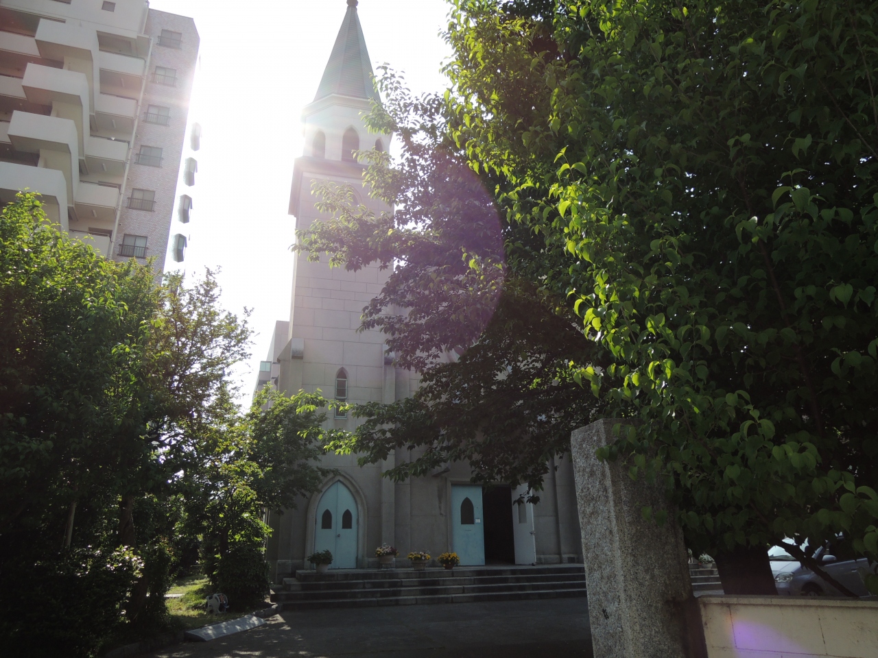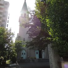 群馬県内初のカトリック教会で、聖堂は尖った塔が印象的なゴシック様式の建物です。