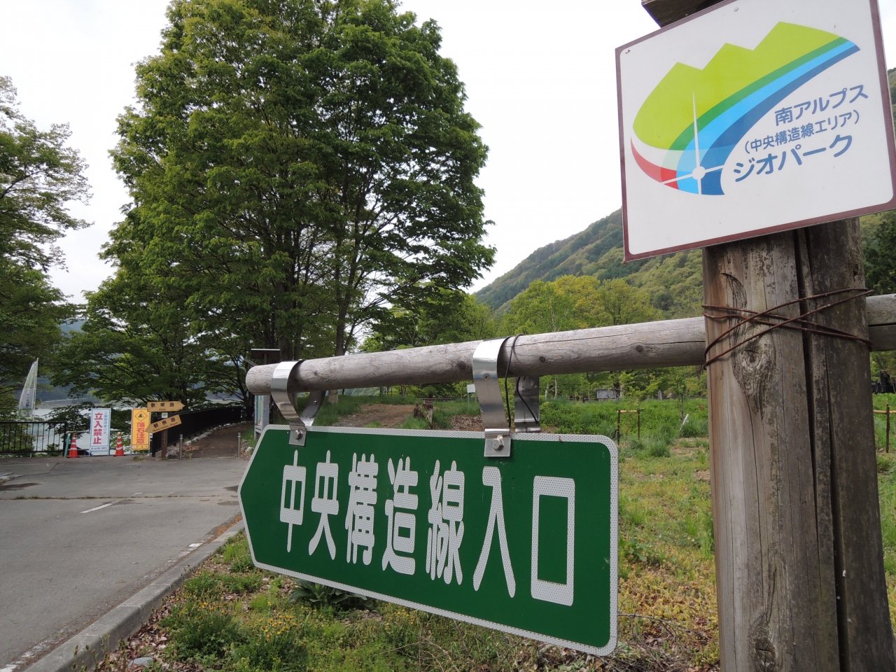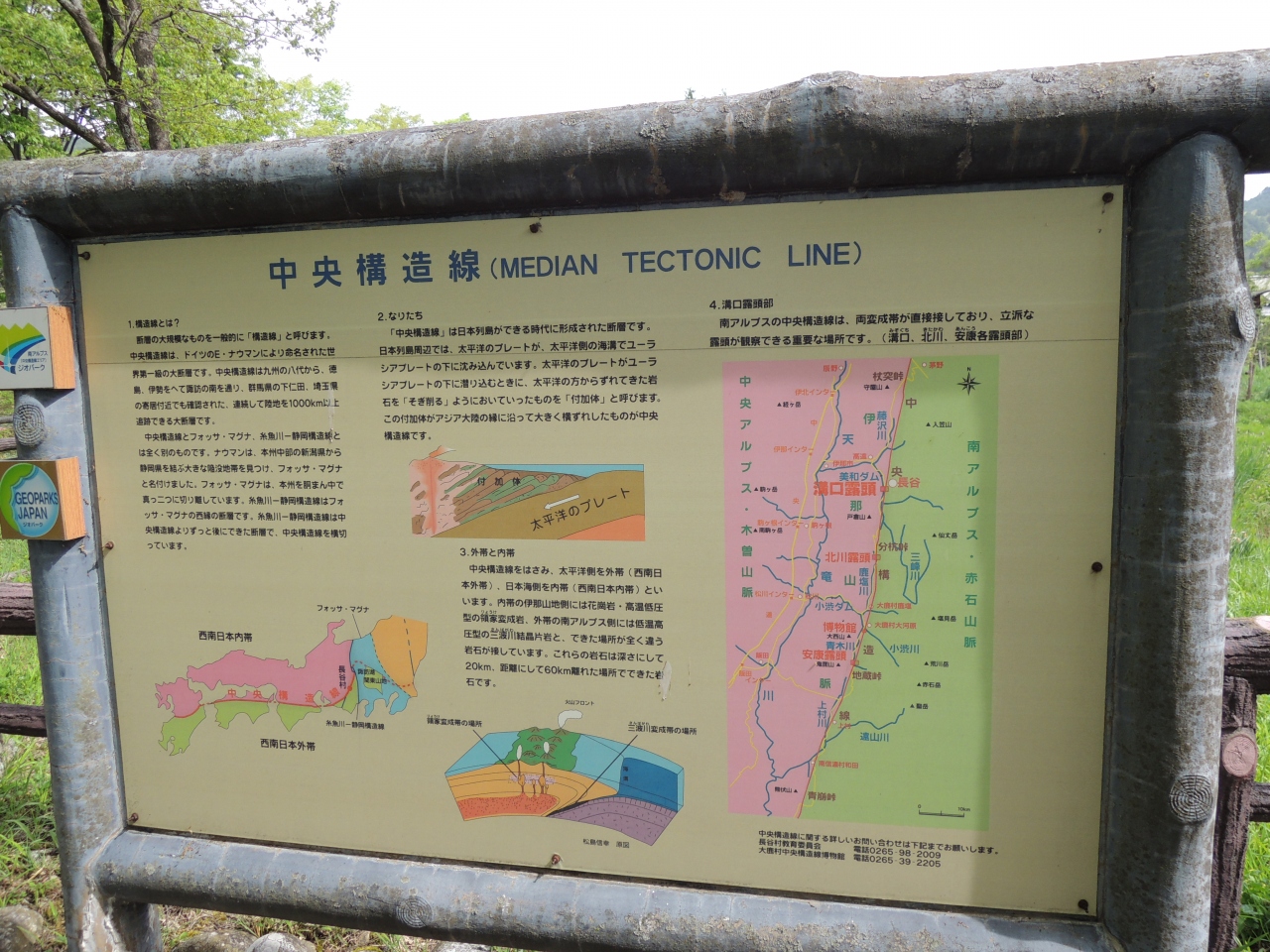公園内には中央構造線についての資料看板がありわかりやすいです。