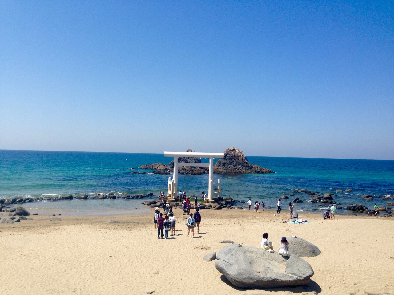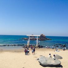 青い海に真っ白な鳥居が映えていてとても爽やかな景色が広がっていました。