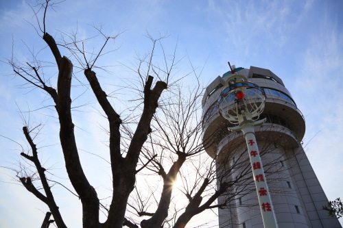 「トンボの標識」(日本標準時子午線表示柱)がPOPな色合いでかわいいです。