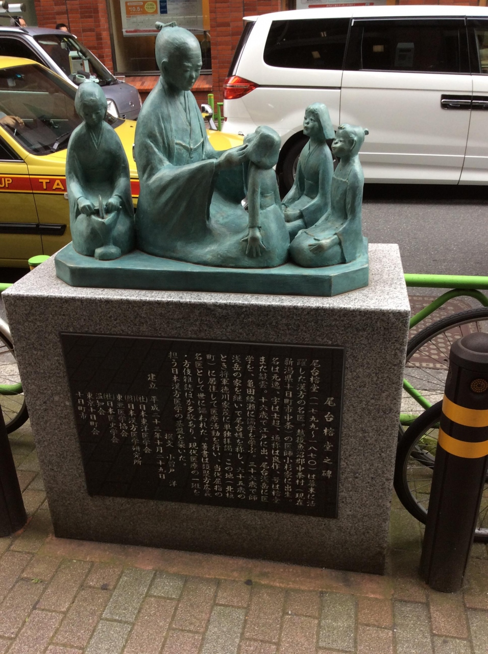 JR東京駅八重洲口から八重洲通りを進んだらすぐの所にある、八重洲ダイビルの脇道の柳通沿いにあります。幕末期の侍医を務めた漢方の名医でありながら、庶民の治療にも熱意を注いだ現代の漢方医学の手本となる医師であった方のようです。