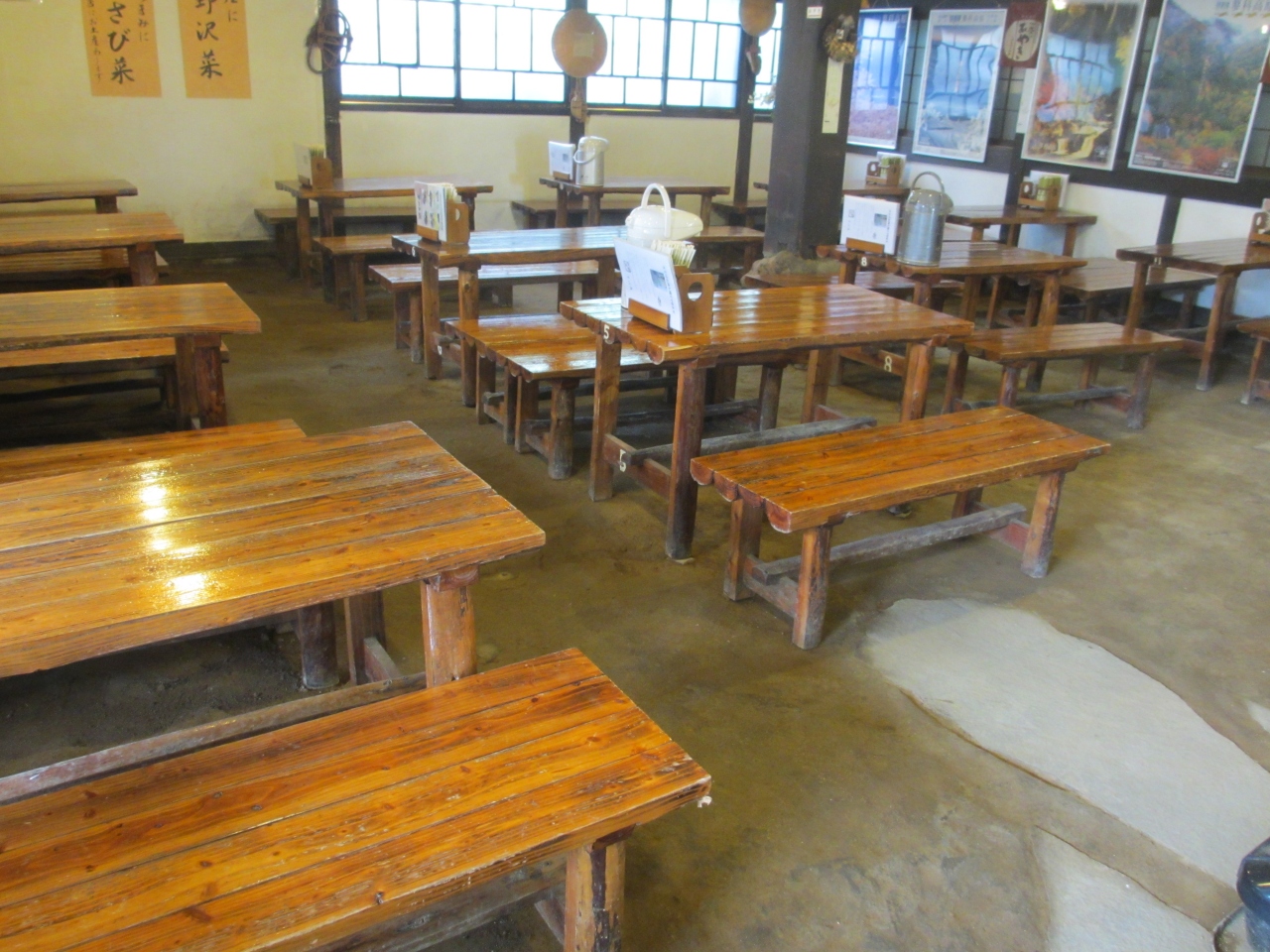 ビーナスラインで蓼科湖を過ぎたすぐのところにあるそば屋さんです。古民家風の建物と、正面に大きな天狗の面が飾られています。フジの季節にはきれいな富士が咲きそろいます。お蕎麦もおいしいのですが、ここのおすすめは何と言ってもおやきです。5種類ほどあるおやきはどれも具がたくさん入り、外の皮ももちもちしていて甘いです。蓼科湖で遊びすぎ、昼を食べ損ねたりした場合、テイクアウトもできるので便利です。もちろんおやつにも最適ですよ。広い駐車場もあります。