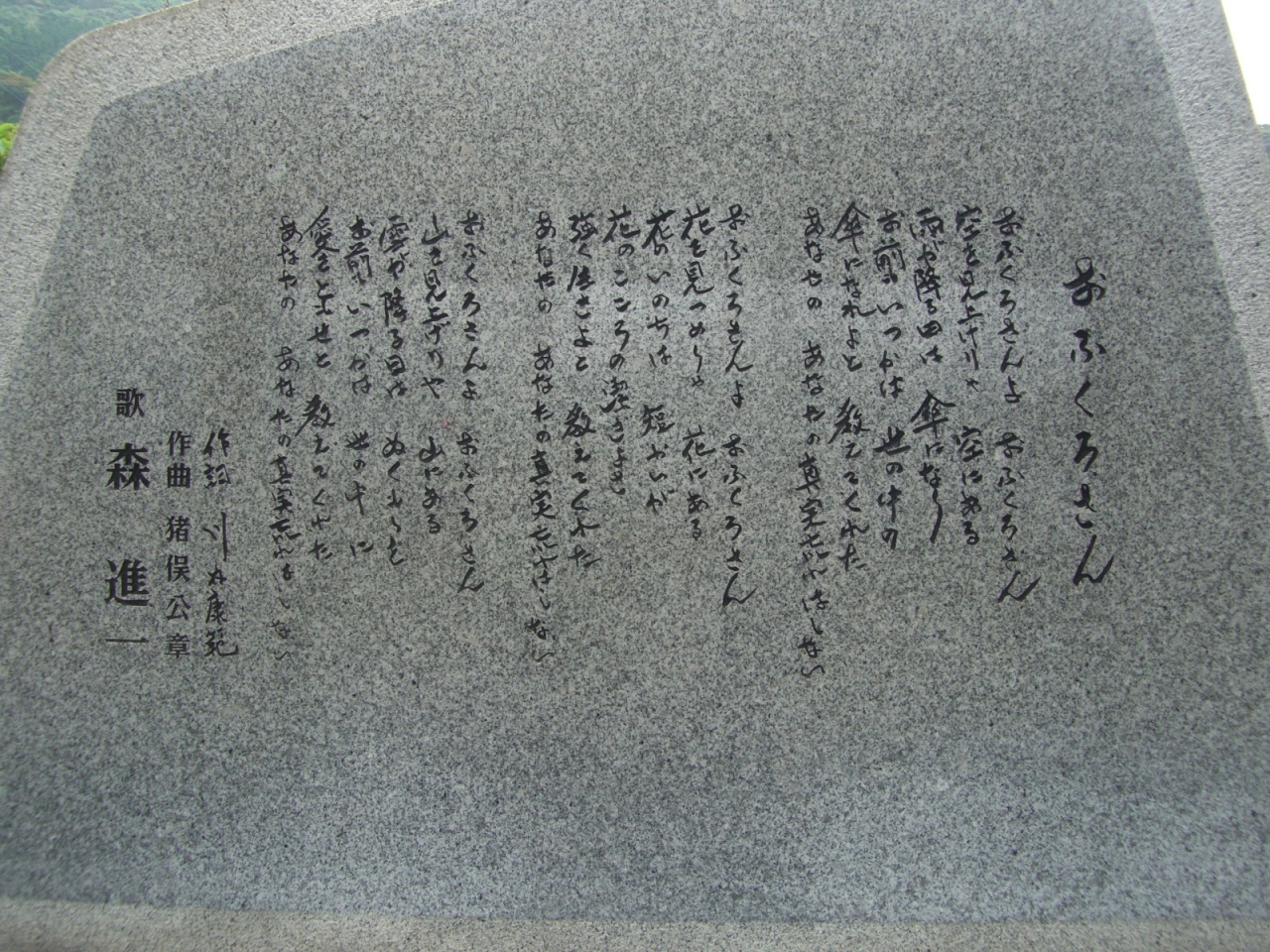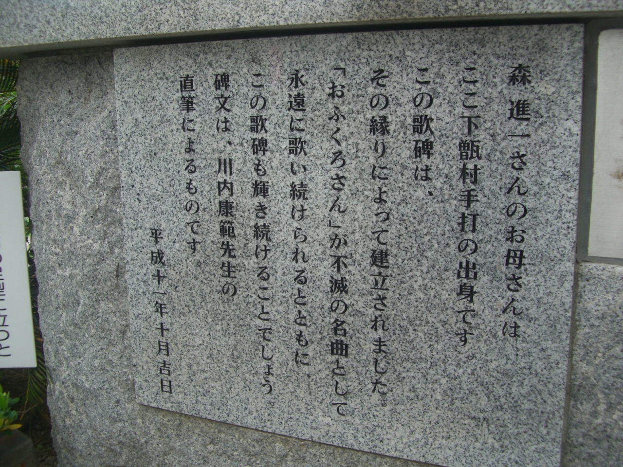 石碑に近づくと「おふくろさん」の歌が流れます。