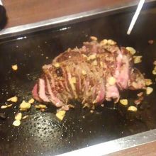 肉は,目の前の鉄板で,焼いてくれるので,目でも楽しめました。