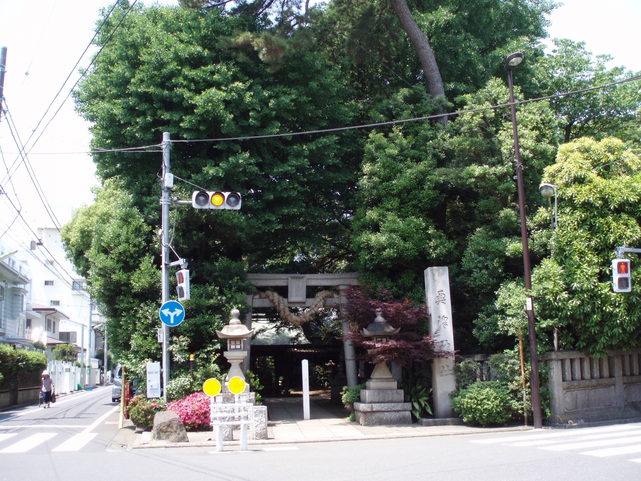 東急電鉄自由が丘駅南口から自由通りを奥沢方面に進んで5分ぐらいで厄除の大蛇お練りでお馴染みの奥澤神社に着きます。奥澤神社鳥居には前年の大蛇お練り神事で使用された藁製の大蛇が巻き付いています。鳥居をくぐって境内へ行くと樹木の緑に囲まれた静かな空間が広がり都会の喧騒を忘れさせてくれる室町時代から続く由緒ある神社です。