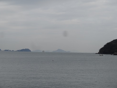 とば駅前にできた「とばマルシェ」で友人とランチ。約束の時間より早く着いたので、「とばマルシェ」からすぐ近くのカモメの散歩道を歩きながら、鳥羽湾の眺めを楽しみました。あいにくのくもり空でしたが、離島や行き交う船も見え、景色を楽しむことができました。