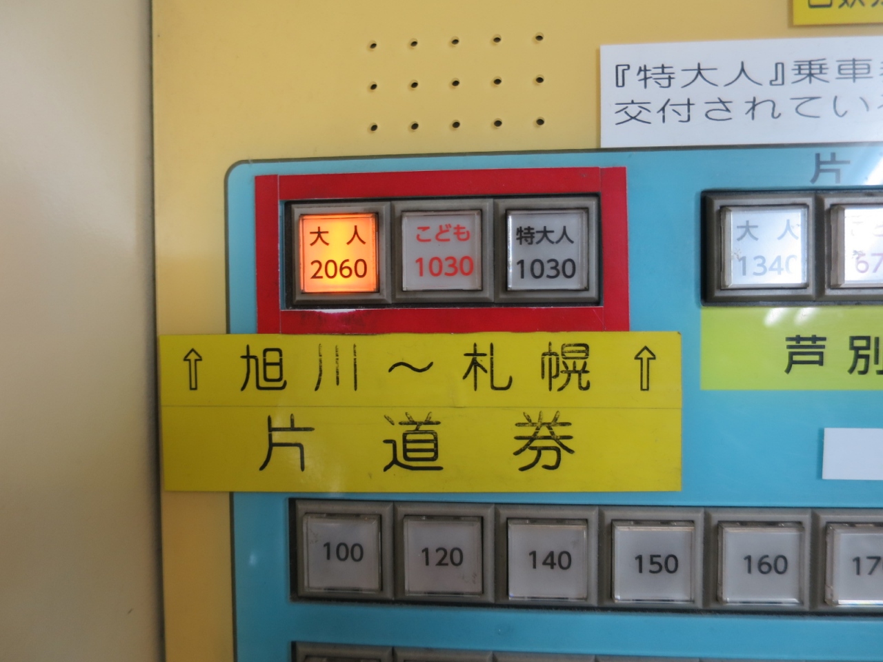 JRの札幌~旭川の特急カムイは片道¥4290円(1時間30分)。
