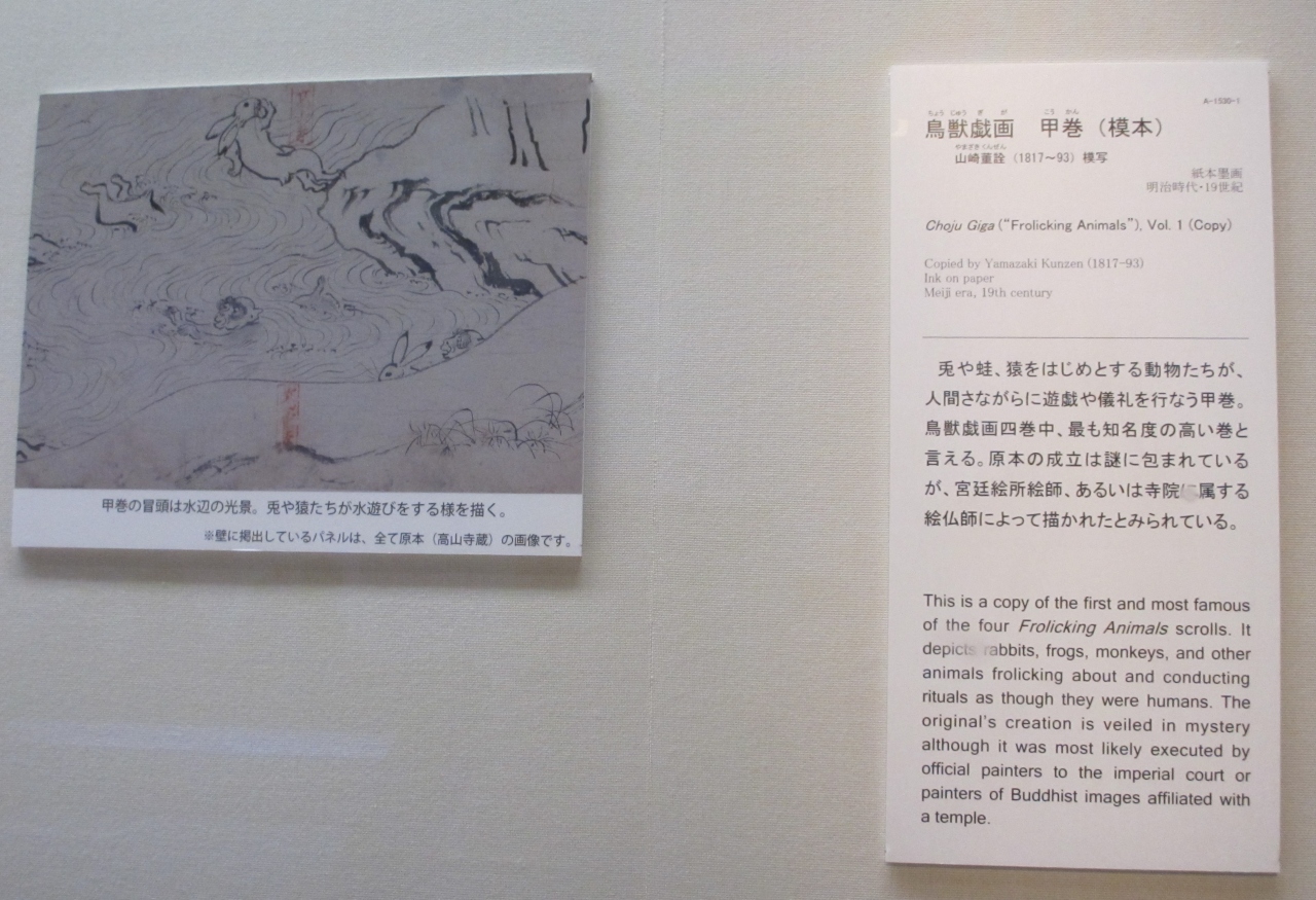 本館の2階では鳥獣戯画の巻物などの複本が展示してあったので、見ていない甲巻の
