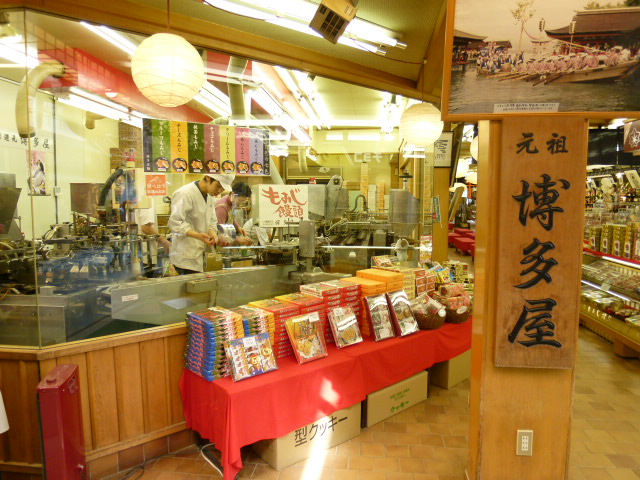 歴史香る宮島を散策しながら地元の人との触れ合いに、もみじ饅頭を食べ歩きしました。さっと手軽に1個から買えて出来立ての味は、生地がふわふわしていてほんのりと甘く、正しく美味でした。博多屋さんも種類が豊富で甘いもの大好きな私としては、とても満足しました。今回は2件でもみじ饅頭お土産にしました。作っている姿が見学できます。楽しいです。杓子もおいていますよ。
