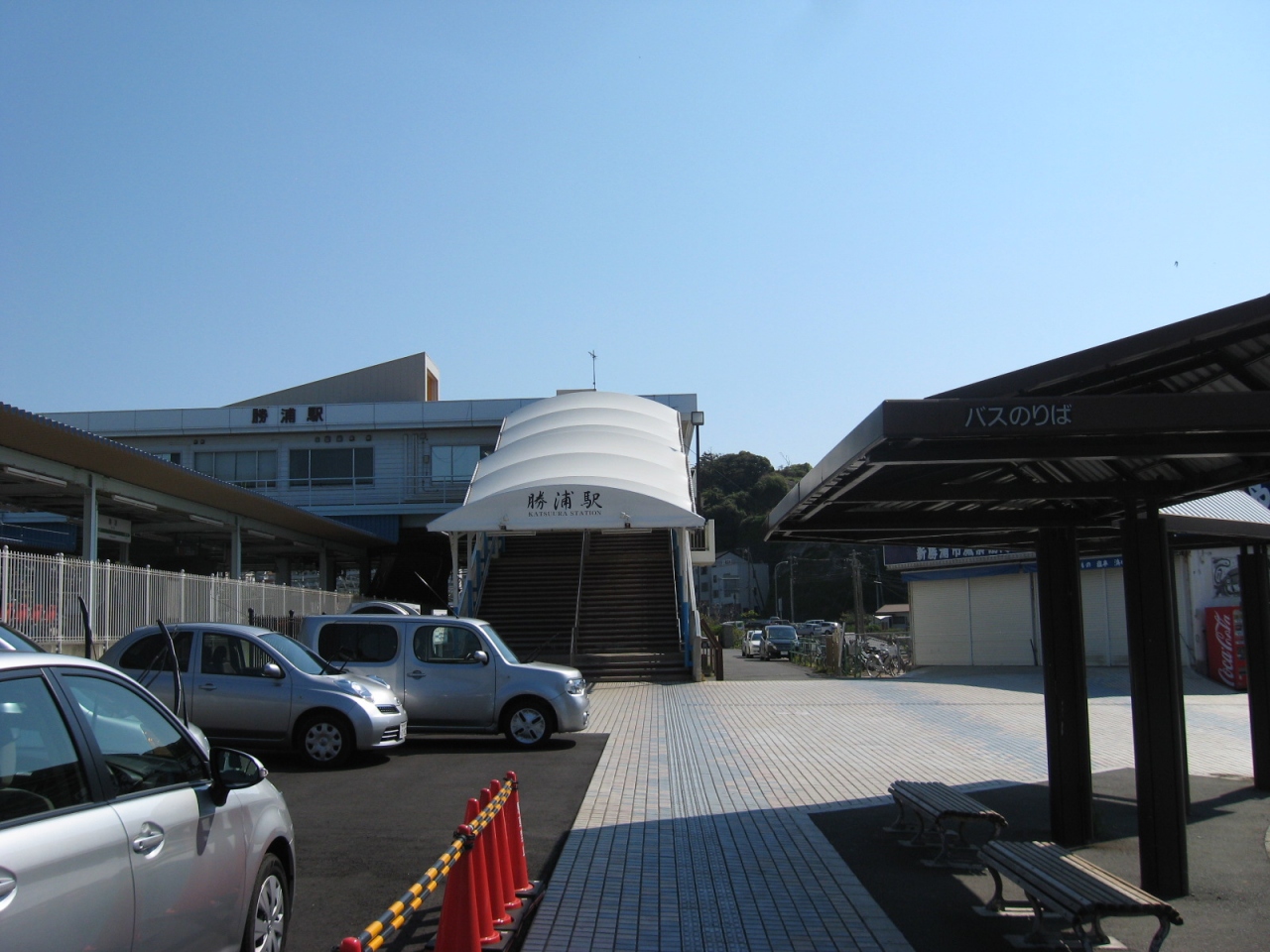 JR外房線勝浦駅は橋上駅です。コンコース階に改札があり、ホームの茂原寄りに階段があります。1番線が千葉方面、2,3番線が茂原方面の列車が発着します。特急列車の停車駅になっています。駅をおりると中央商店街、有名な朝市などのスポットまで徒歩ですぐです。