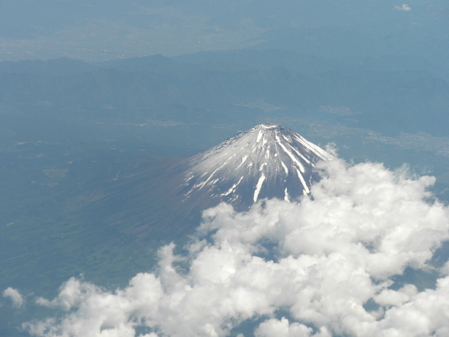 毎年この時期に飛行機に乗るのですが、初めてくっきりと富士山を見ることができました。飛行機から見る富士山は、当たり前なのですが地図と同じ形をしていて何か感動しました。