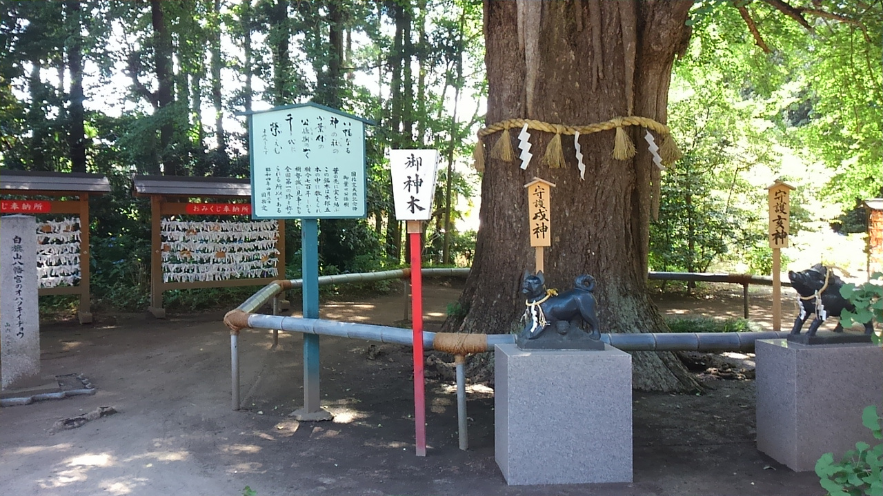 戌と亥の置物は、天然記念物「御葉付公孫樹」の前にありました。