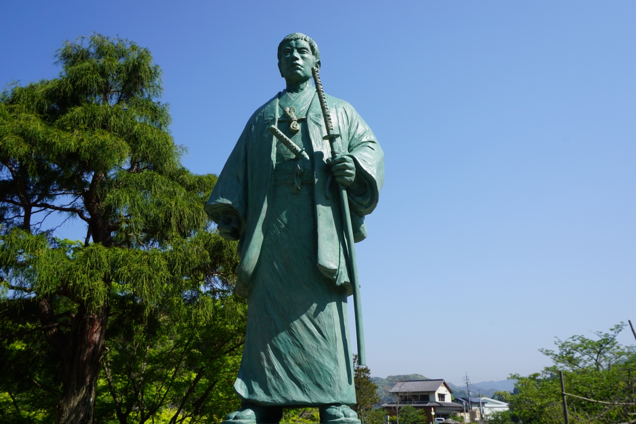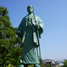 ここは晋作の墓がある公園のような施設。大きな池の周囲には、緑が豊かで、散策道も整備されています。なお、晋作の愛人おうのが出家し、ここで晋作の菩提を弔っています。